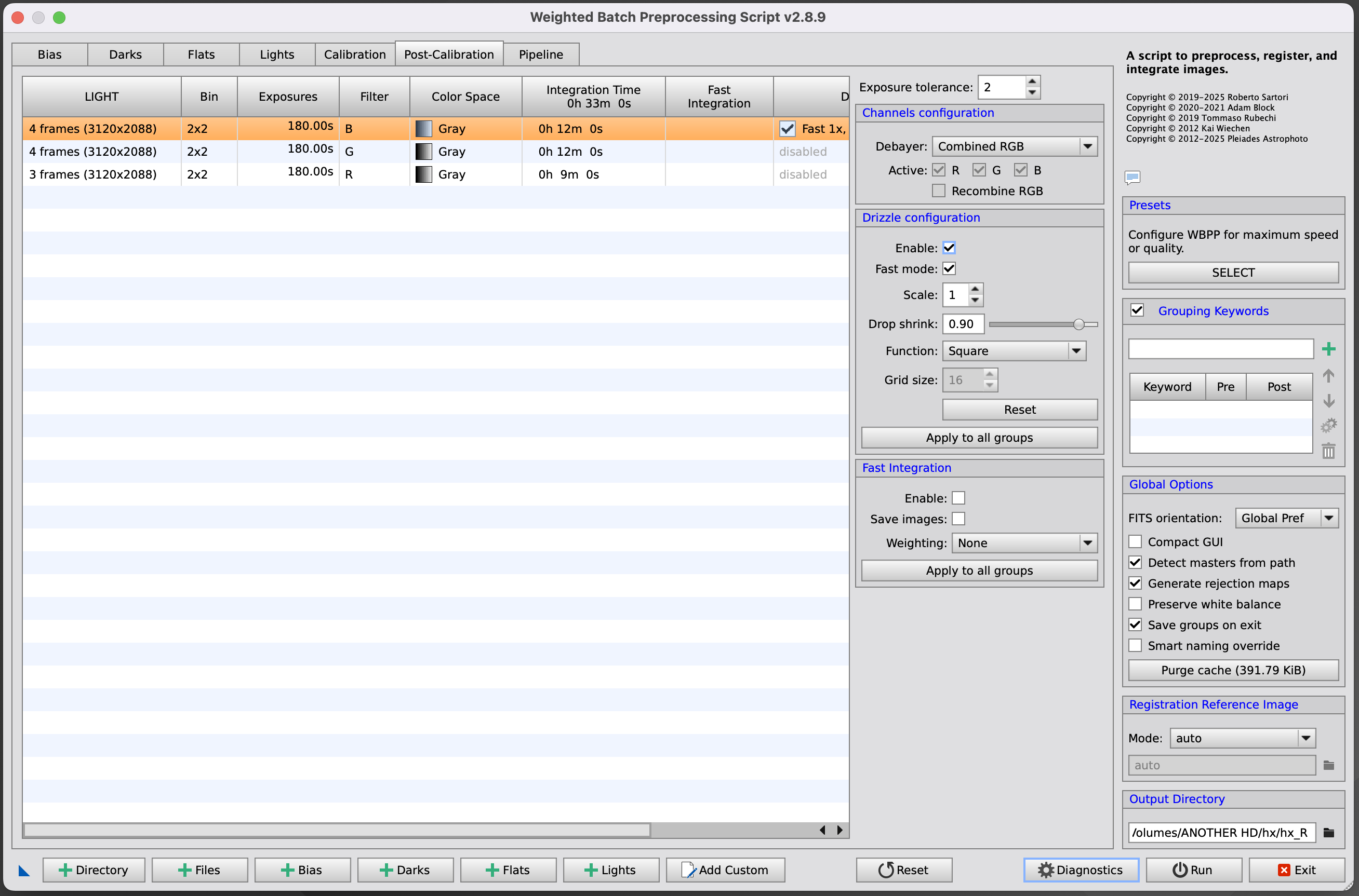 (5)WBPPのPost-Calibrationの画面です。Drizzle は1です。