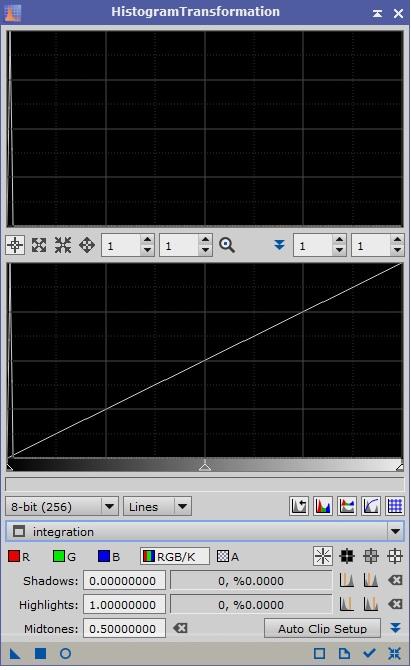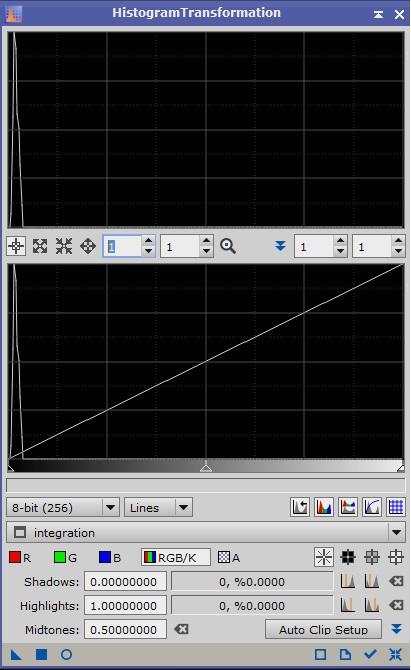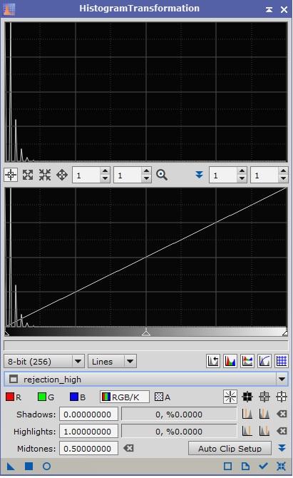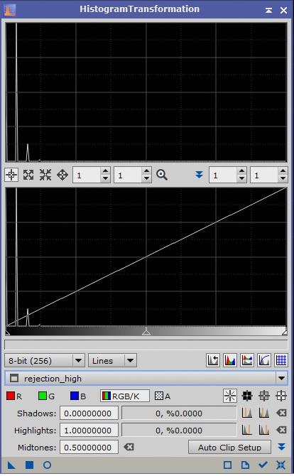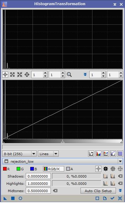 ゲスト> 今後の参考のために、撮り直す前と後のフラットのヒストグラムを見せていただけませんか。Histogram Transformation のスクショで結構です。