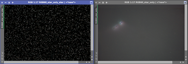 そして、PixelMathで星画像と背景画像を足しました。PixelMathは単なる足し算で良いと思います。