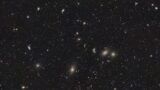 ベランダのお約束で北極星は見えず、ドリフト法により極軸あわせをしました。まずスマホのコンパスと傾斜計で赤道儀のSWATを正しい方向にあわせます。次に南の星を数分撮影し、北にずれたら東に、南にずれたら西に調整します。西の星も同じく撮影し、北にずれたら北向きに、南にずれたら南向きに調整します。(今回は西の星を使ったので、東の場合と向きは逆になります)
