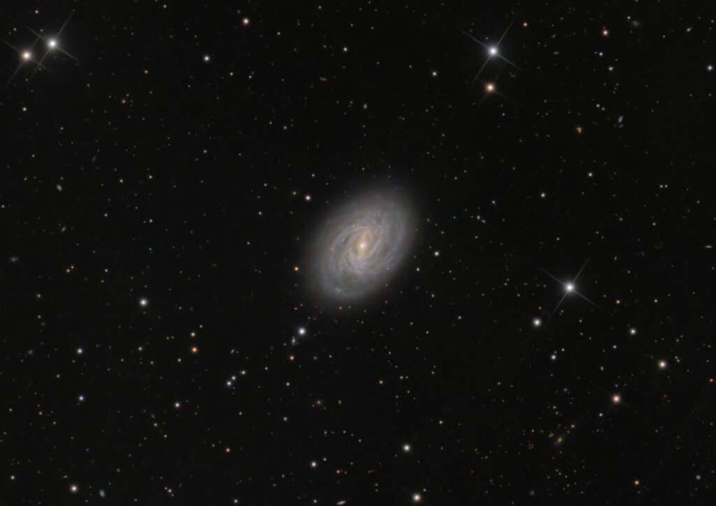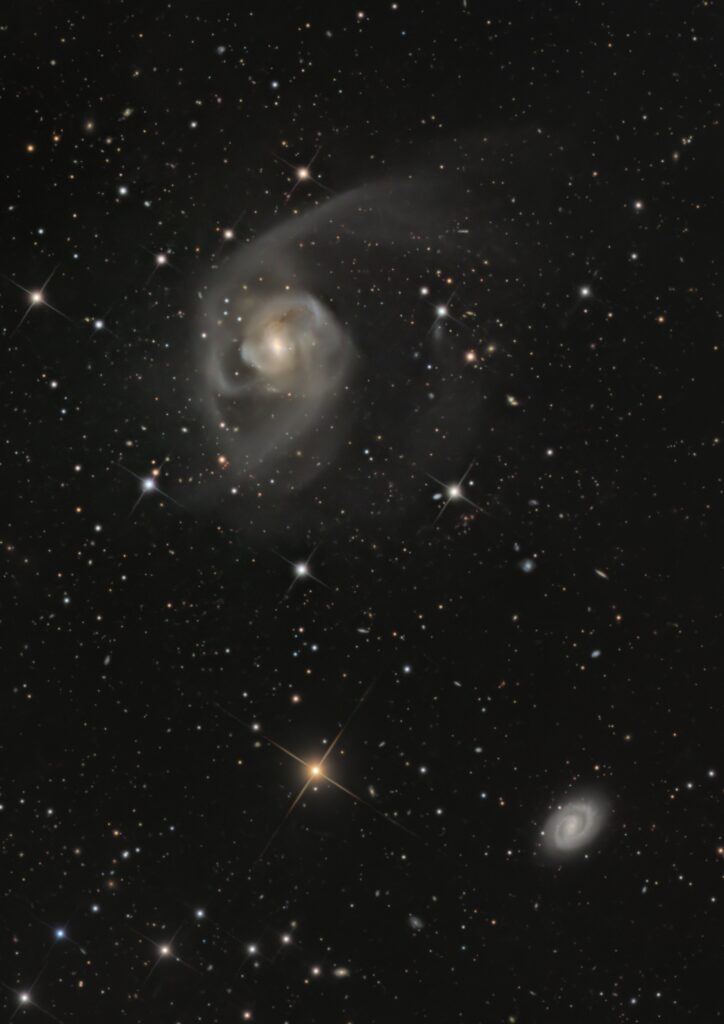 写真の右下には典型的な棒渦巻き銀河のNGC 7724も写っています。この銀河の地球までの距離は8900万光年なので、NGC7727から比較的近い距離にあります。しかし2つの銀河の重力の影響はほとんどないそうです。