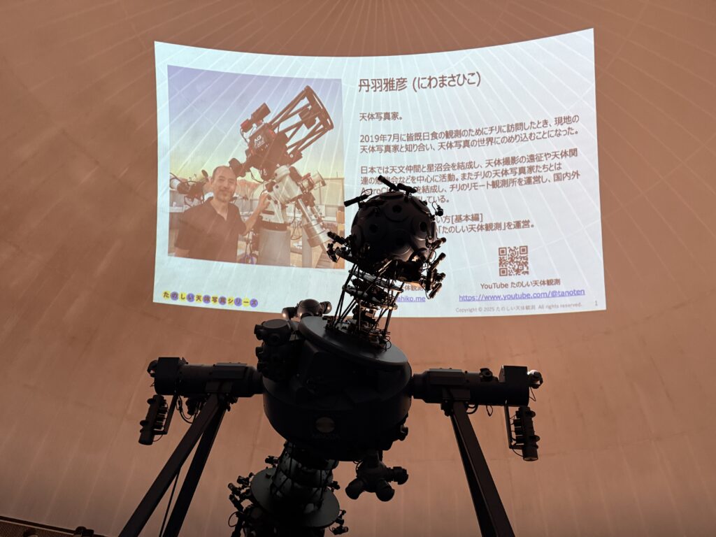 星見屋の南口さんと私はプラネタリウムでプレゼンしました。南口さんは長く天文をつづけるためのヒントについてお話をされました。私は画像処理の基本について、PixInsightのデモを交えつつ、しかしツールによらない天体画像処理の基本概念を解説しました。高価なPixInsightを購入しなくても、フリーソフトのSirilなどでも十分できることも説明しています(実際、PixInsightとSirilはかなり似ています)